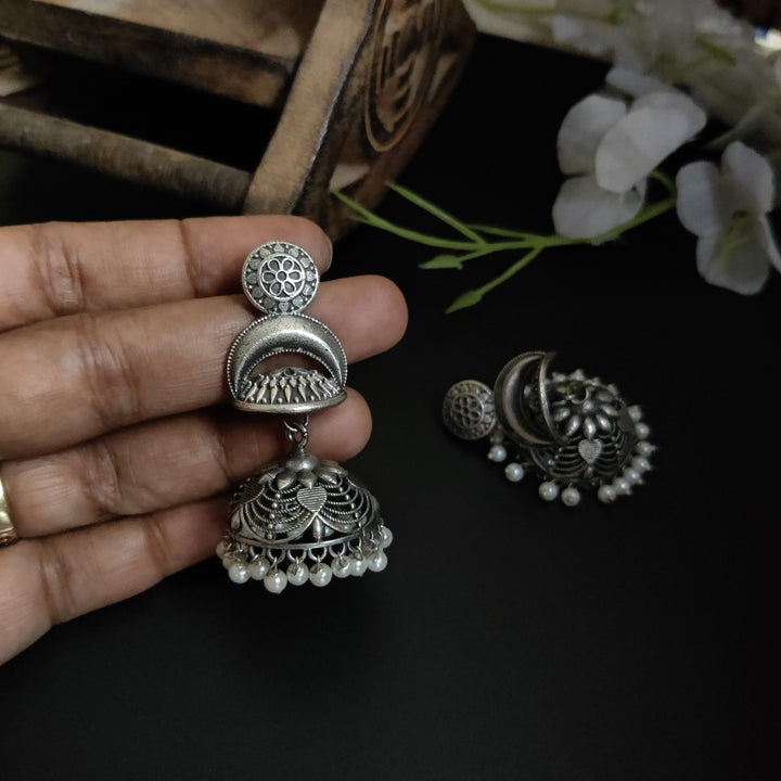 "Abhiyanshi" Silver Look Alike Oxidised Jhumka Earrings