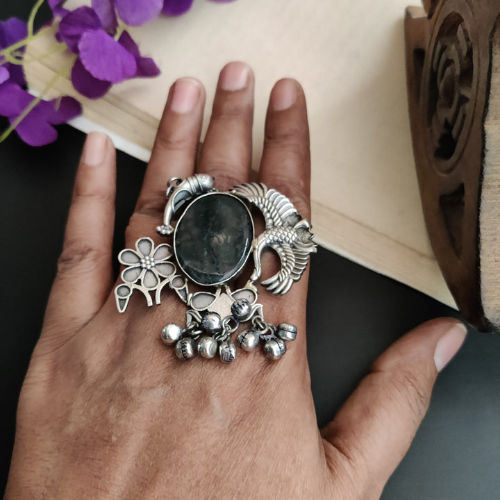 Adjustable Oxidized Silver Fusion Brass Ring Model 50
