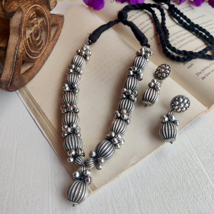 “Ansh” Silver Lookalike Brass Oxidised Statement Brass Mala