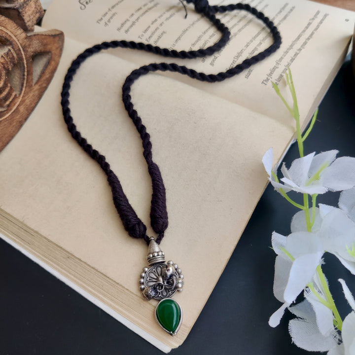 "Asma" Silver Look Alike Oxidised Tassel Necklace