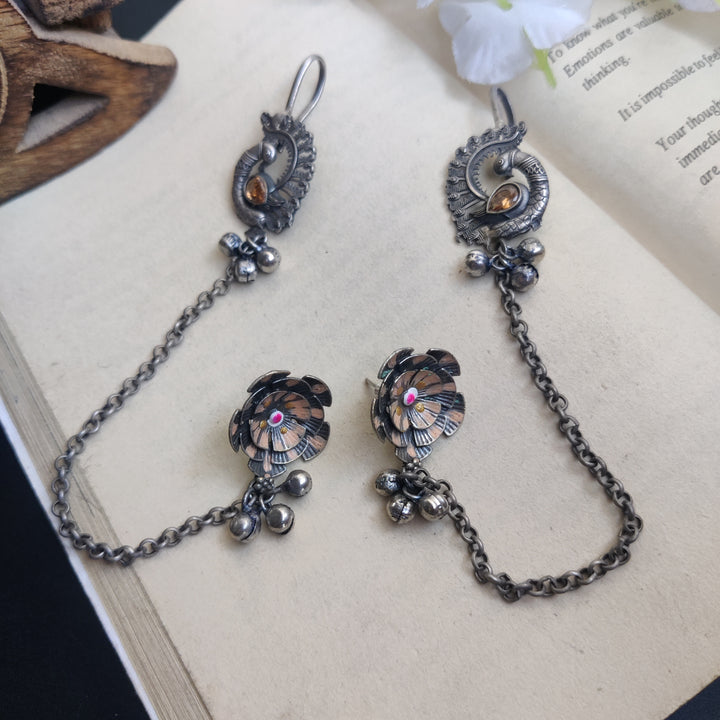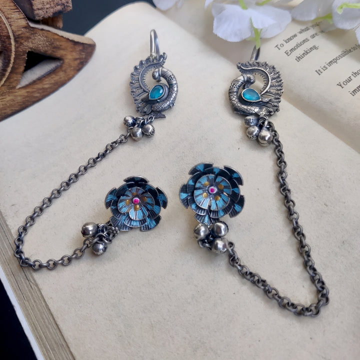 Peacock Silver Look Alike Oxidised Hand painted Earcuff
