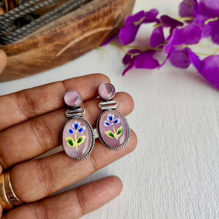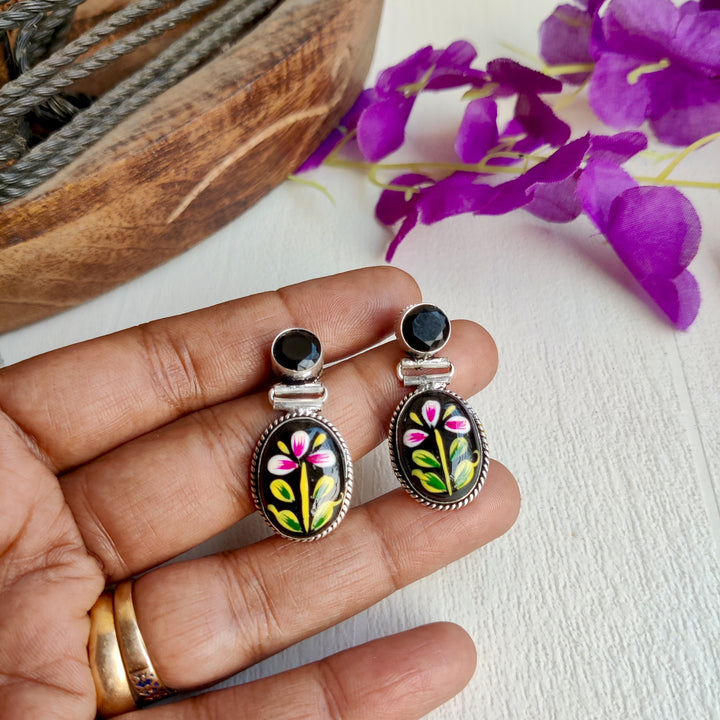 Elegant Monalisa Stone Hand painted Oxidised Earrings