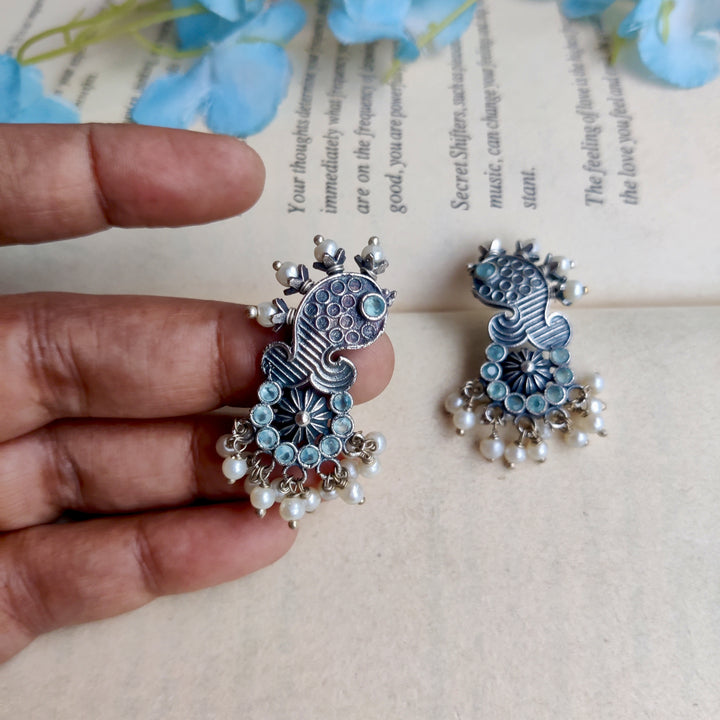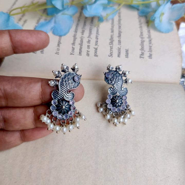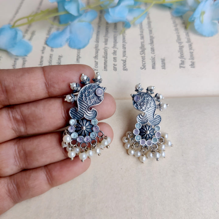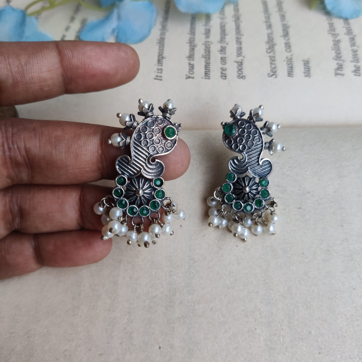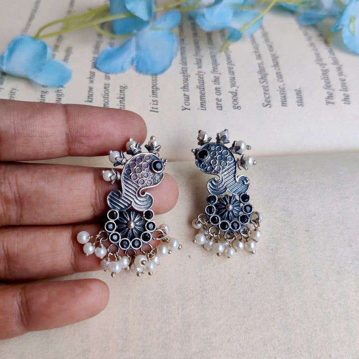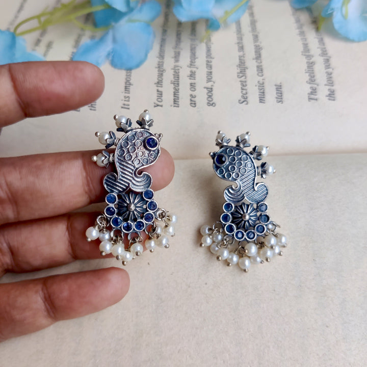 Handcrafted silver lookalike Matsya Earrings. Too light and perfect for Office or Regular wear. Base material Premium Quality brass Precautions: Clean with cotton after use and store in provided plastic...