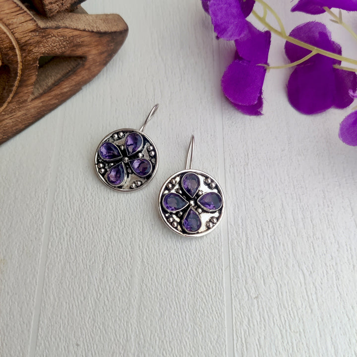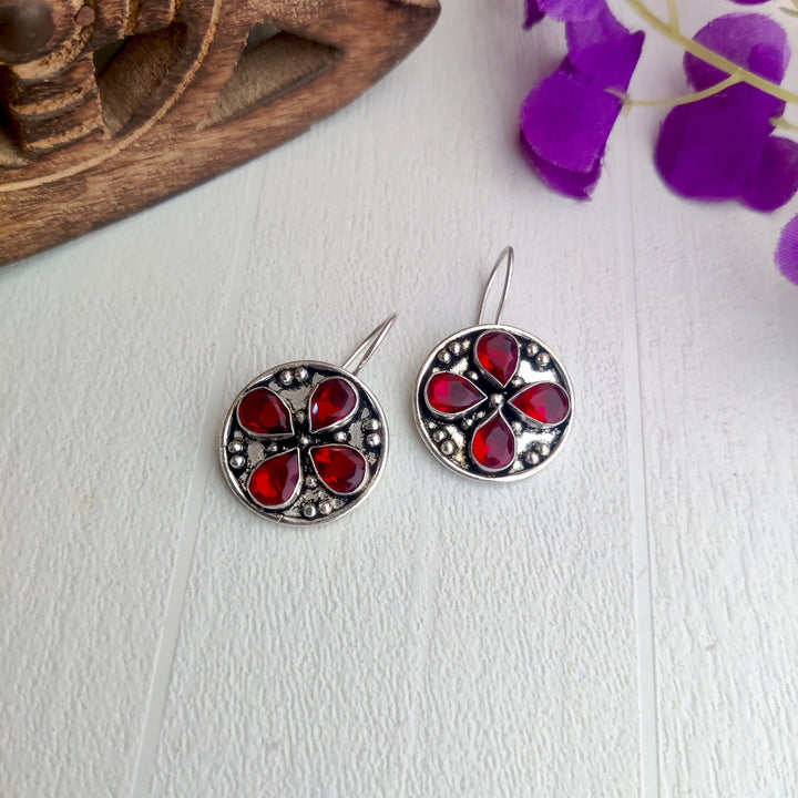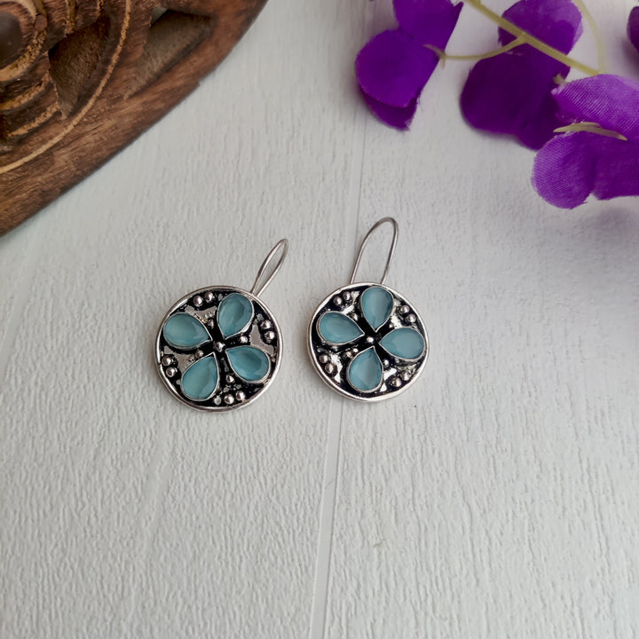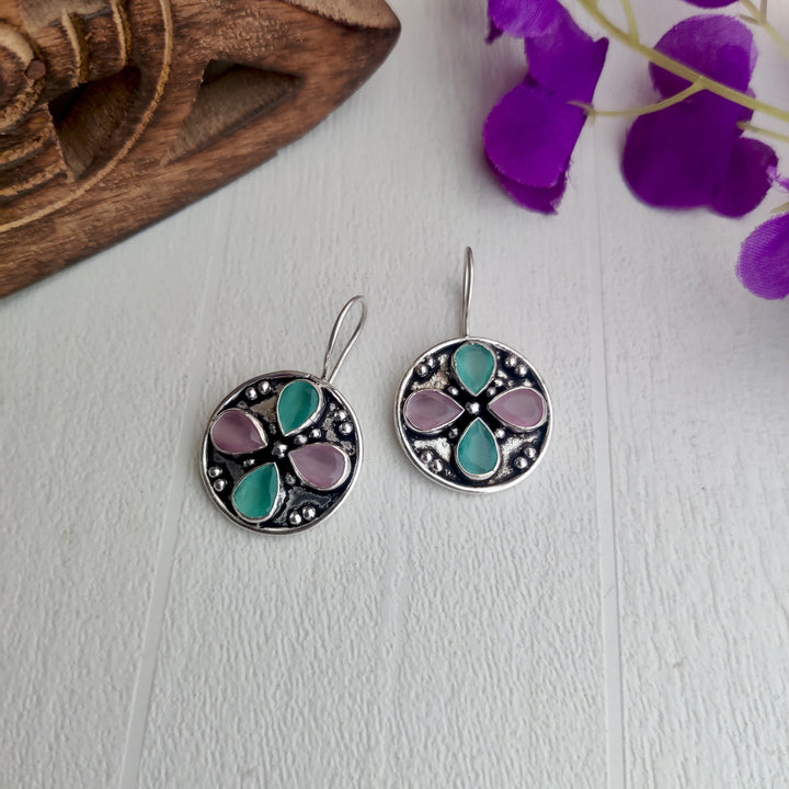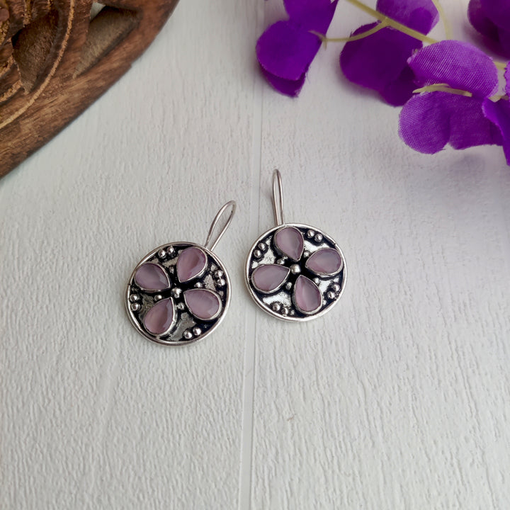 “Floral” Round Shaped Silver Look Alike hook earrings