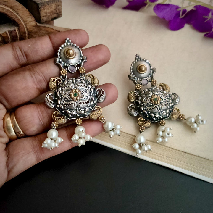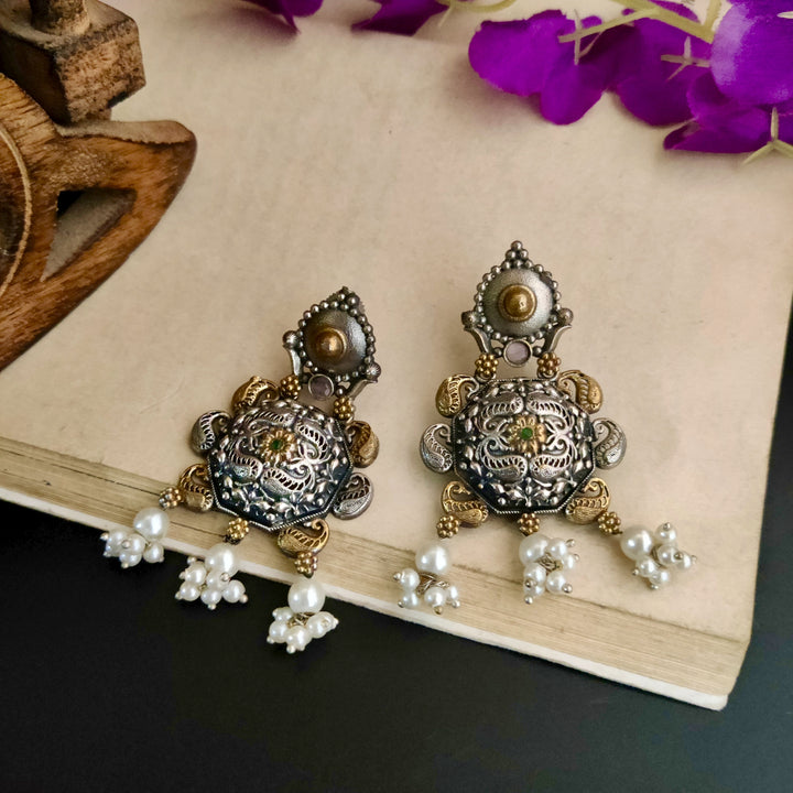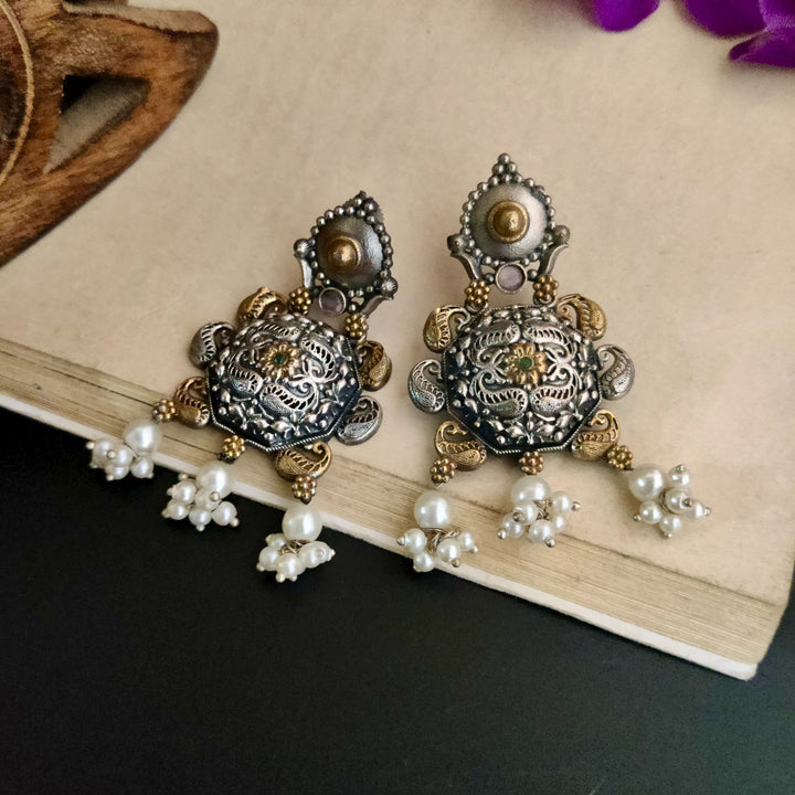 Silver look alike jewelry collection which Conquer millions of hearts by wearing this stunning brass earrings. This handcrafted earrings is sure to enhance your look. The eye-catching design speaks of its eccentric workmanship.