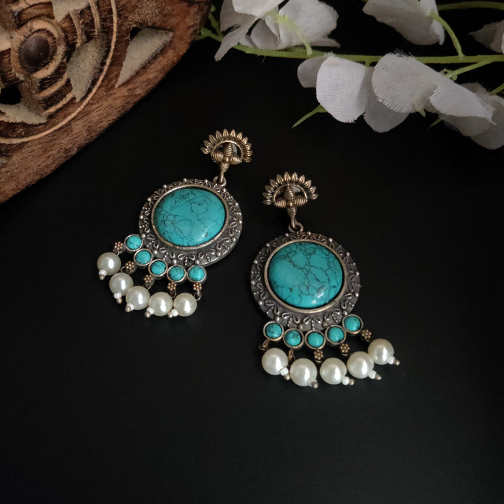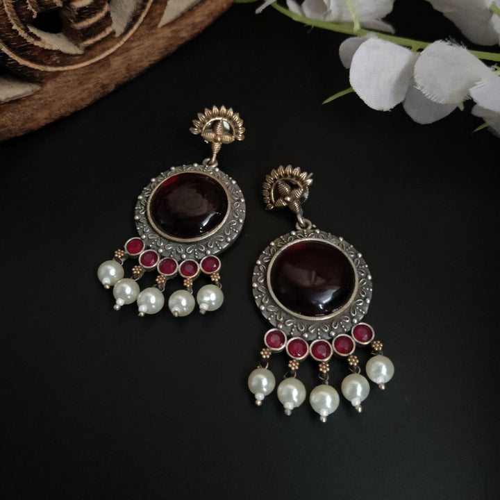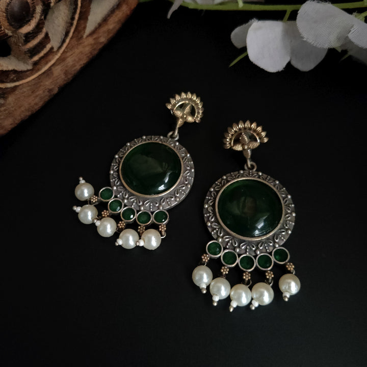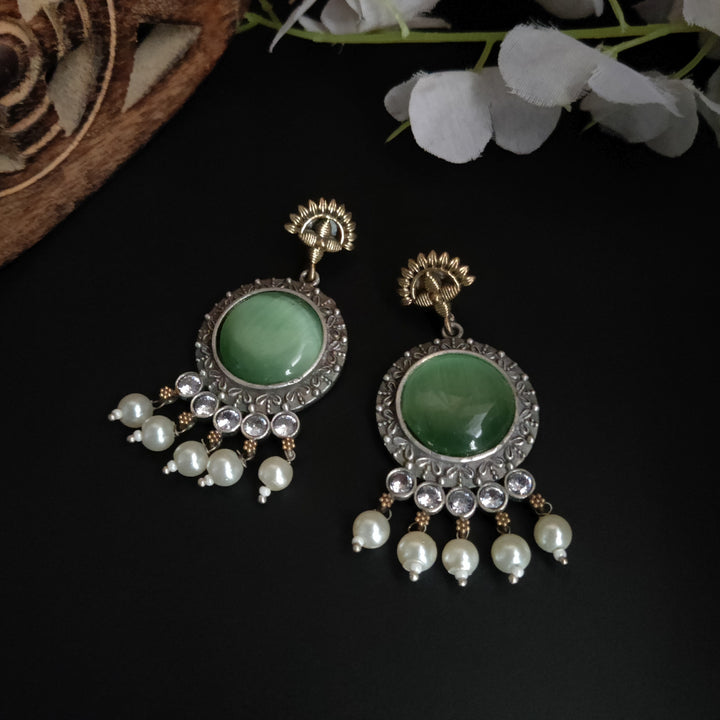 Jyostna Silver Look Alike Dual tone Oxidized Dangler