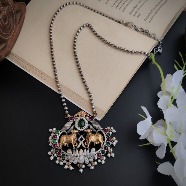 "Cow" Dual Tone oxidized long Necklace