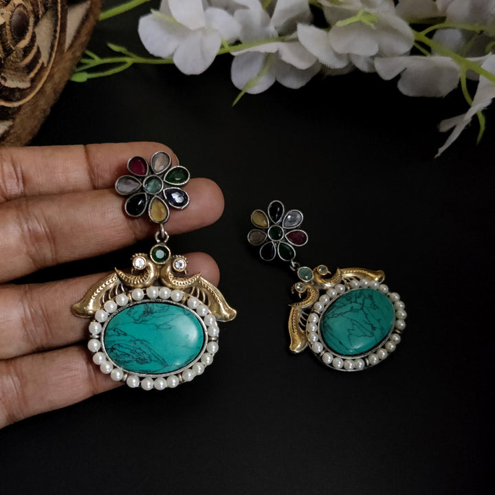 "Kalki" Silver Look Alike Dual Tone Earrings