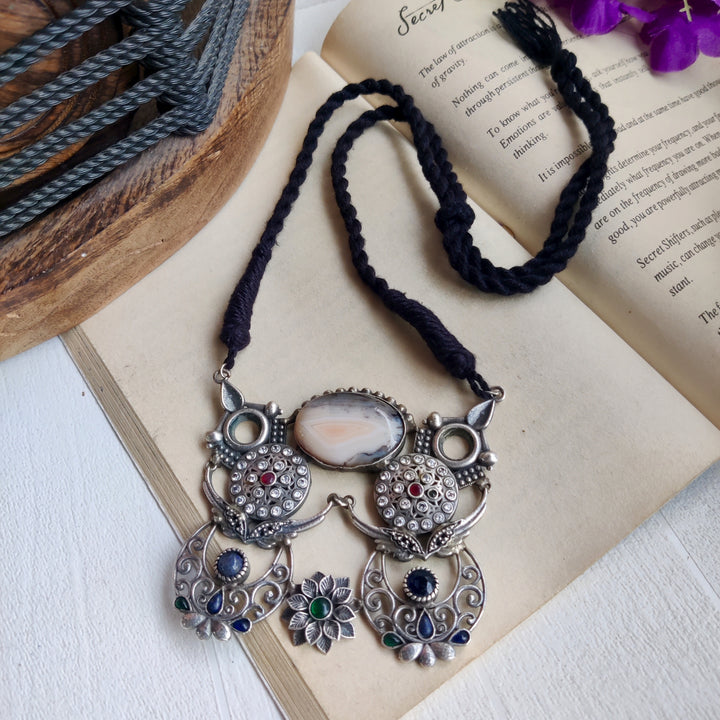 "Kamalinī" Silver Look Alike Oxidised Necklace