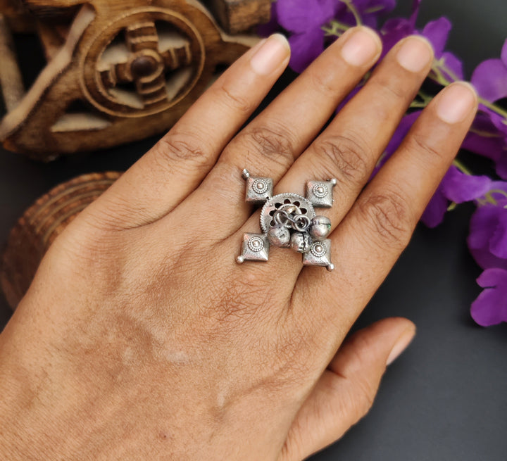 "khushboo" Adjustable Oxidized Silver Brass Rings