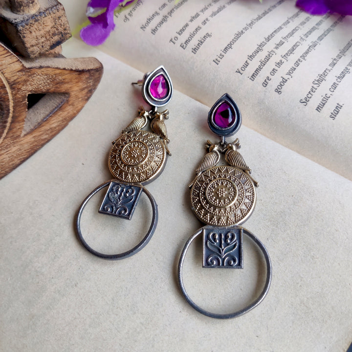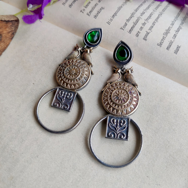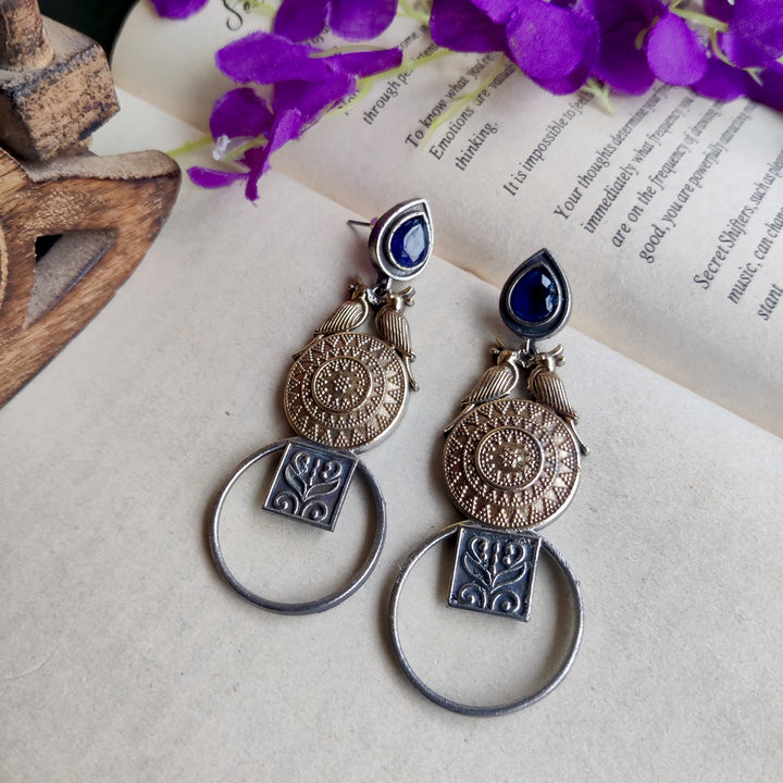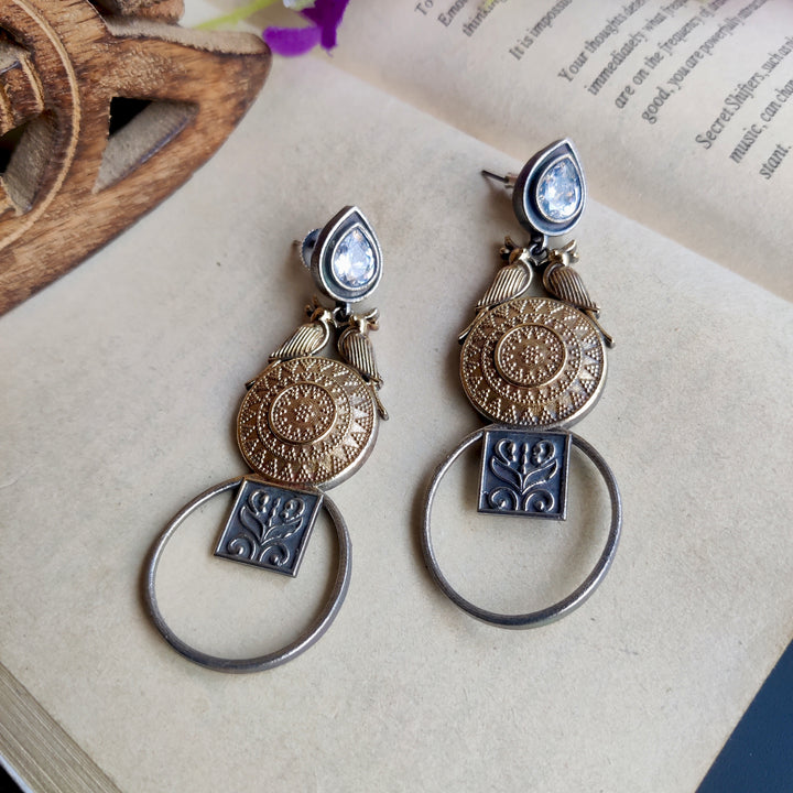 "Niza" Handmade Oxidized Dual Tone long Earrings