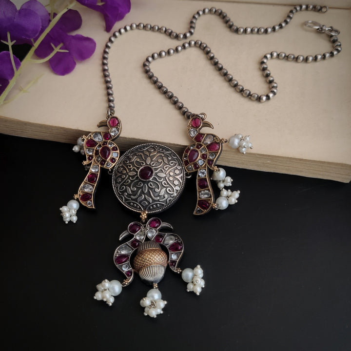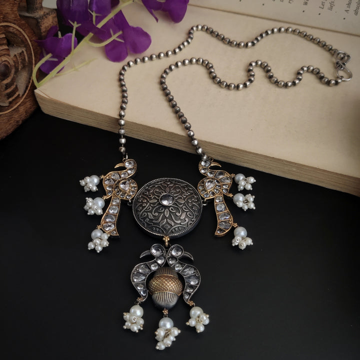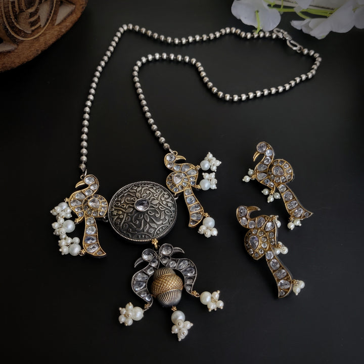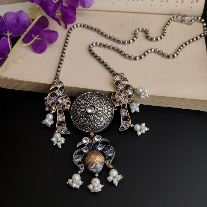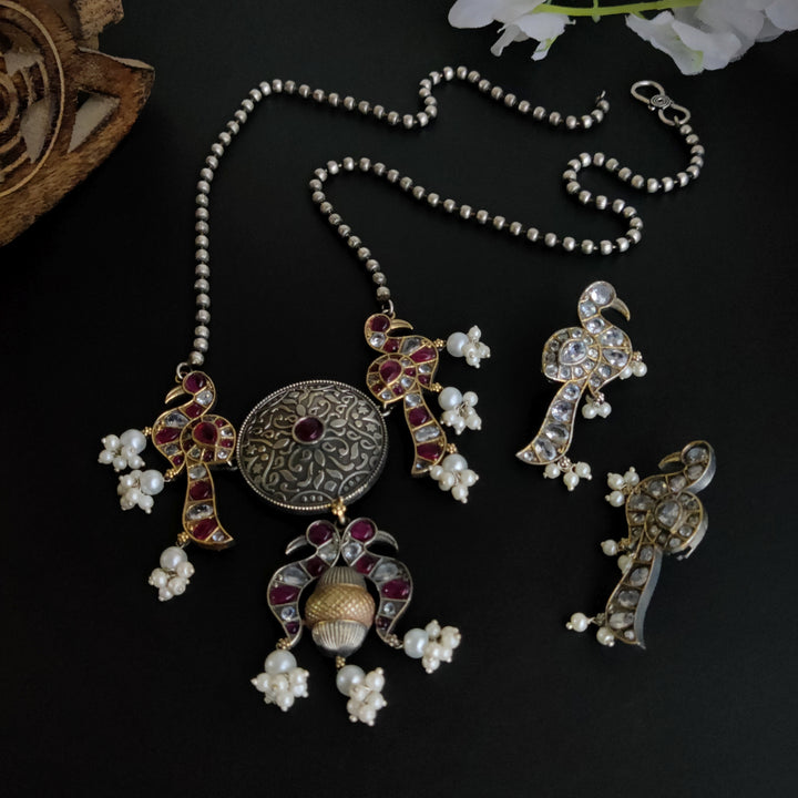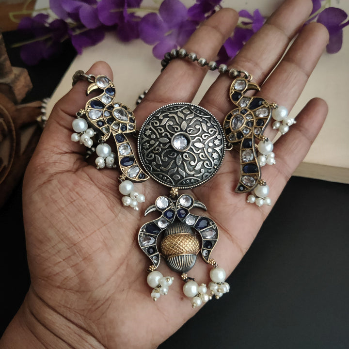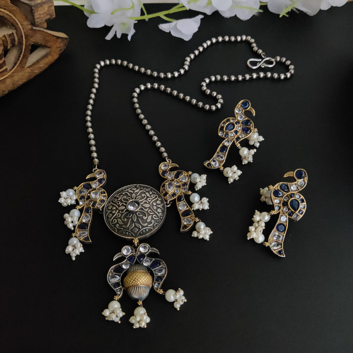 “Nilam” Silver Look alike Dual Tone Necklace set