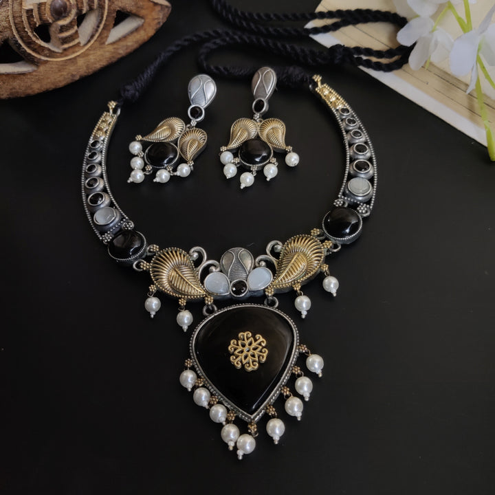 “Okha” Silver Look alike Dual Tone Necklace