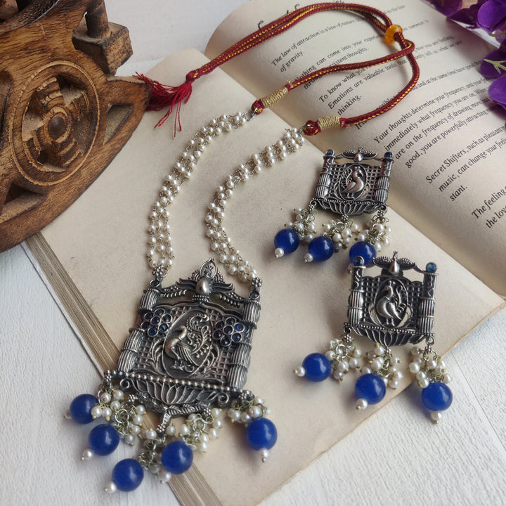 “Reshavi” Silver Lookalike Brass Oxidised Statement Necklace