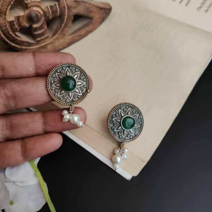 Silver look alike jewelry collection which Conquer millions of hearts by wearing this stunning brass earrings. This handcrafted earrings is sure to enhance your look. The eye-catching design speaks of its eccentric workmanship.
