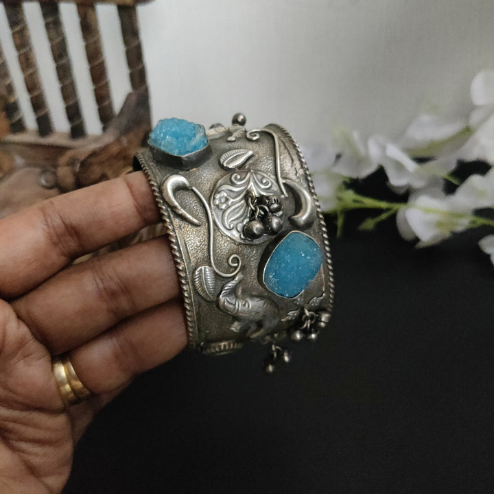 Beautiful Antique Design Oxidized Indian Silver Plated Fusion Adjustable Stone Bracelet is designed to make you feel confident, empowered, and beautiful every time you adorn them. Clean with cotton after use...