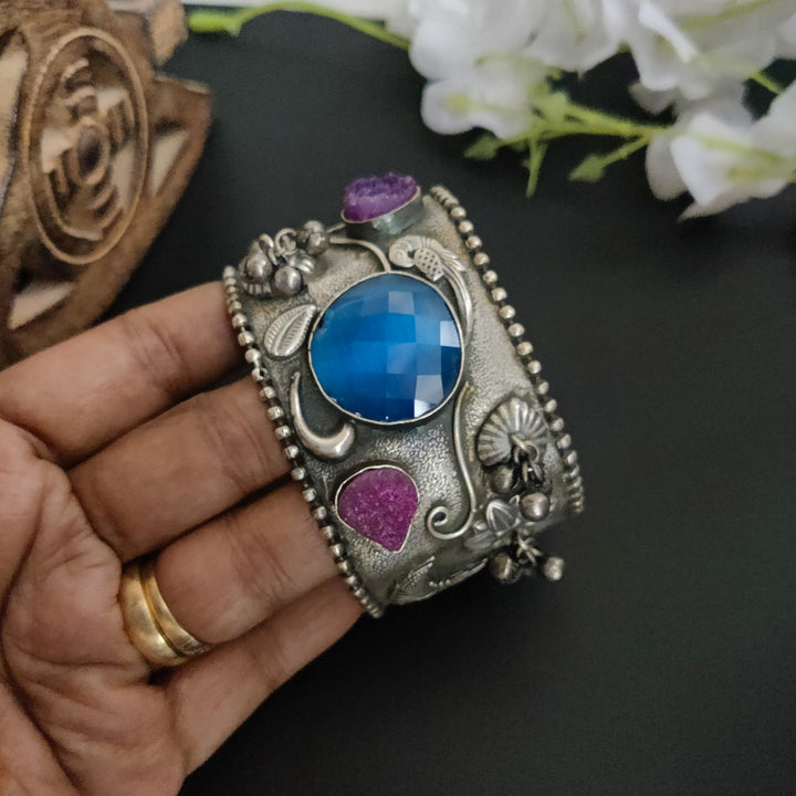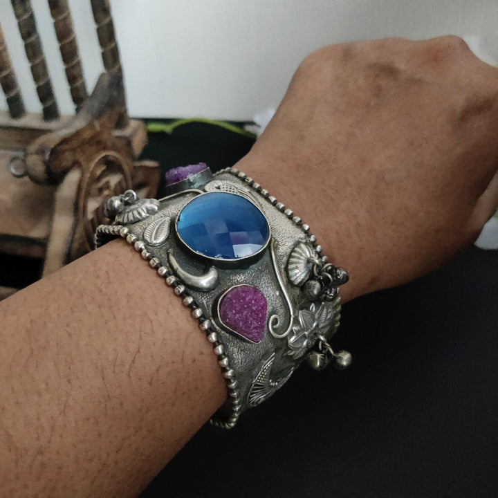 Adjustable Silver Plated Handmade Bracelet Beautiful Antique Design Oxidized Indian Silver Plated Fusion Adjustable Stone Bracelet is designed to make you feel confident, empowered, and beautiful every time you adorn them....