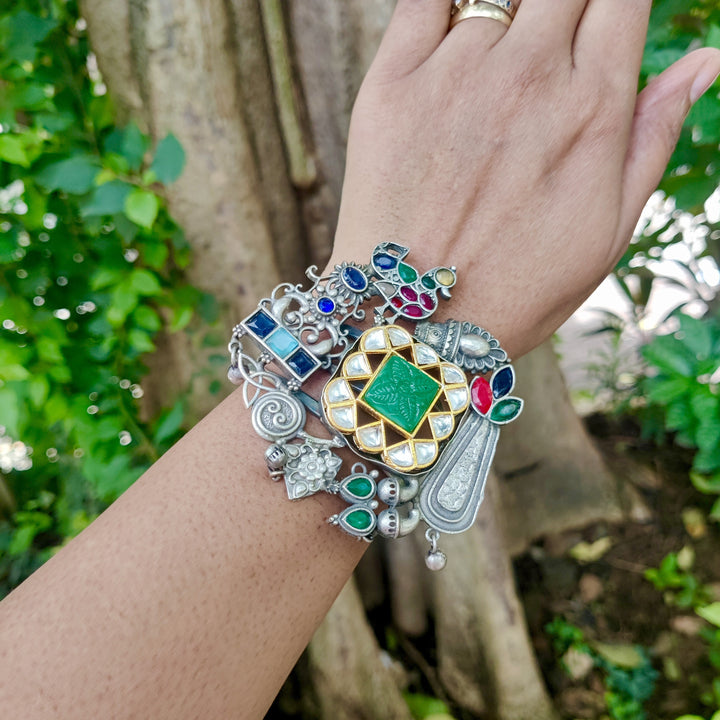 Beautiful Antique Design Oxidized Indian Silver Plated Fusion Adjustable Stone Bracelet is designed to make you feel confident, empowered, and beautiful every time you adorn them. Clean with cotton after use...